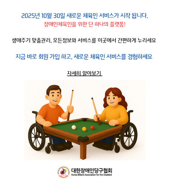 대한장애인당구협회는 많은 장애인들이 당구를 통해 사회 참여할 수 있도록 최선을 다하겠습니다.